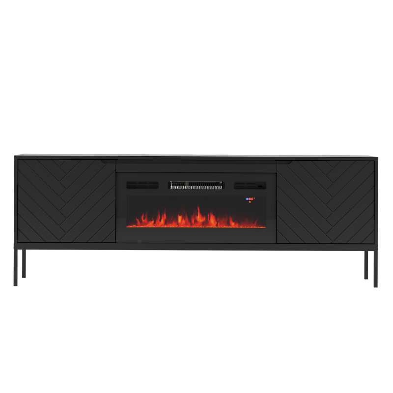 Szafka RTV 180cm z kominkiem czarny stelaż - ASPEN 02