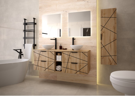 Szafka łazienkowa podwójna140cm z regałem - WOOD 02